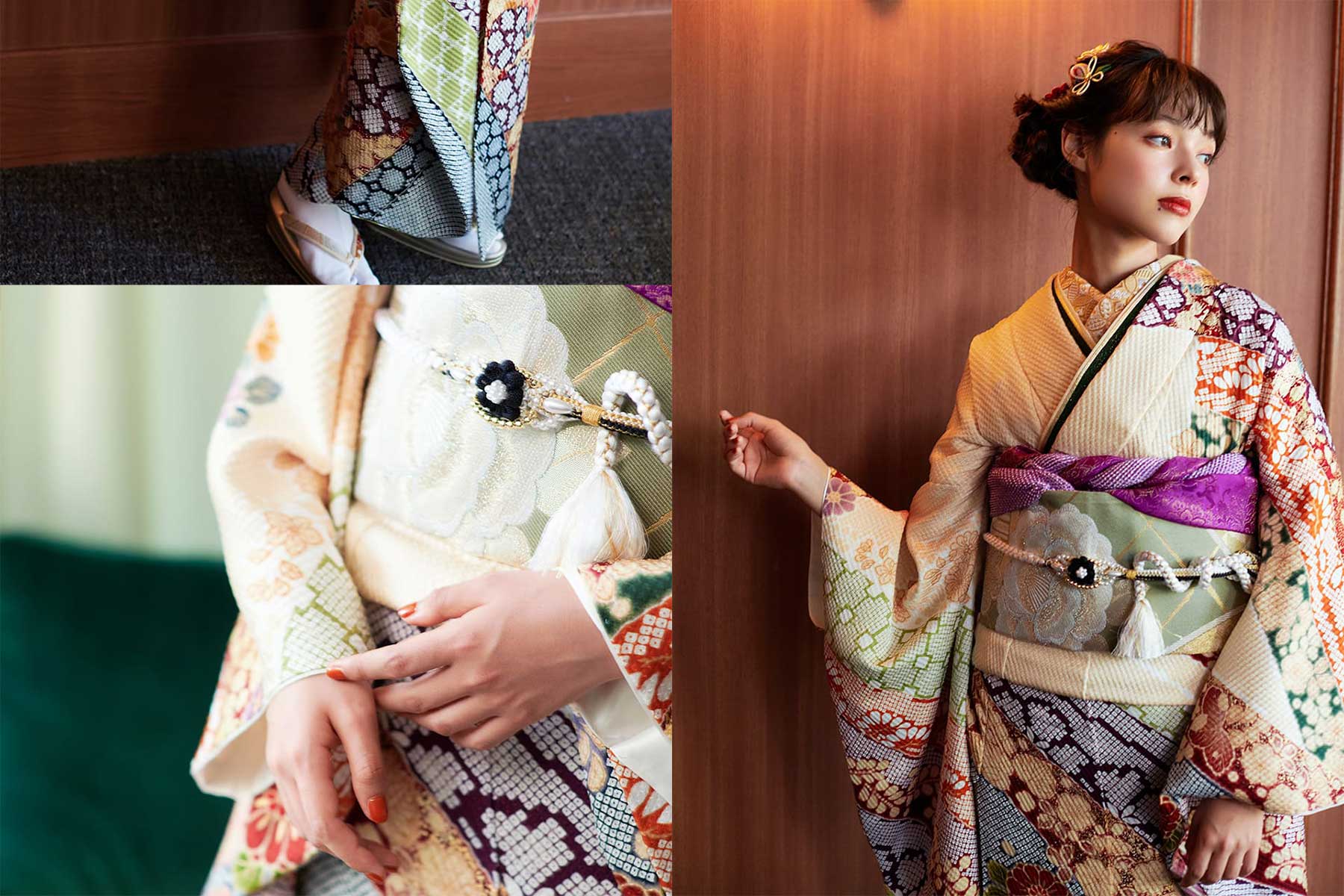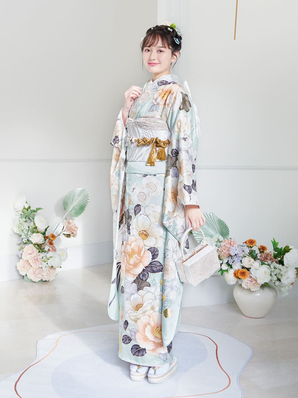 振袖だけでなく、合わせる小物もくすみカラーの商品が多くなっていますので、統一感のあるコーディネートができます。