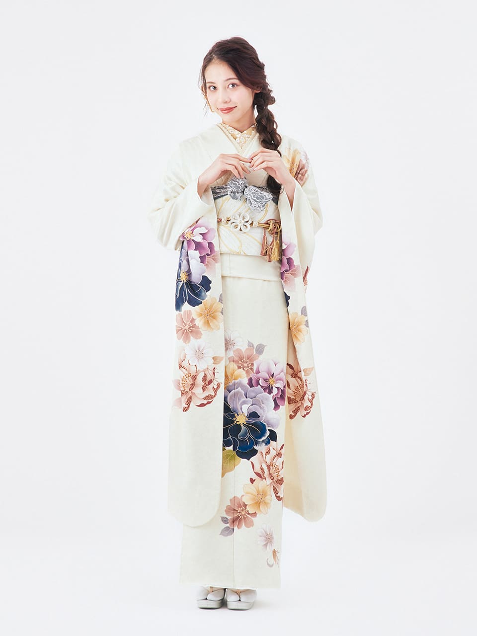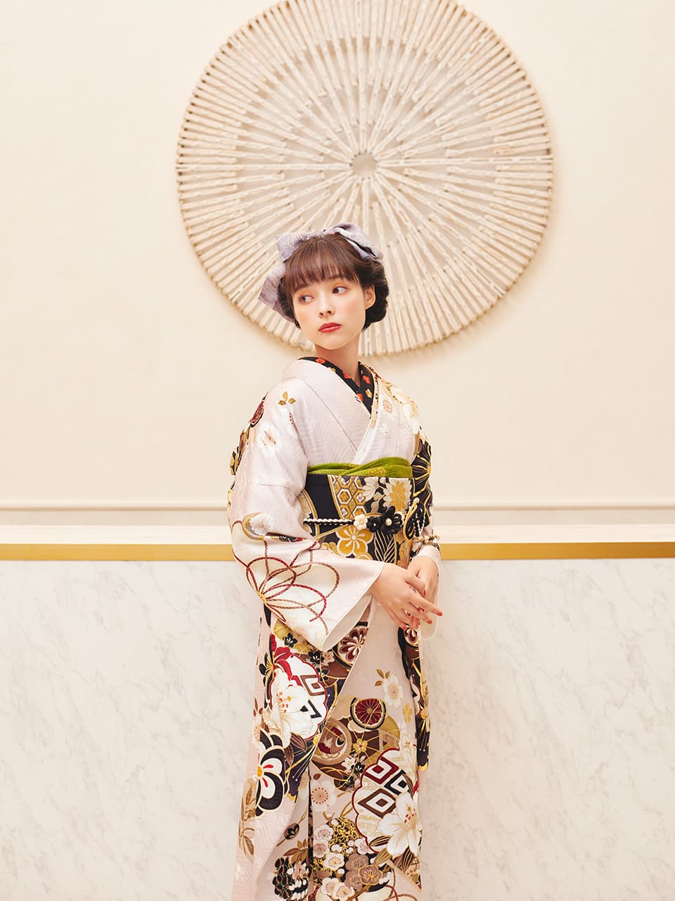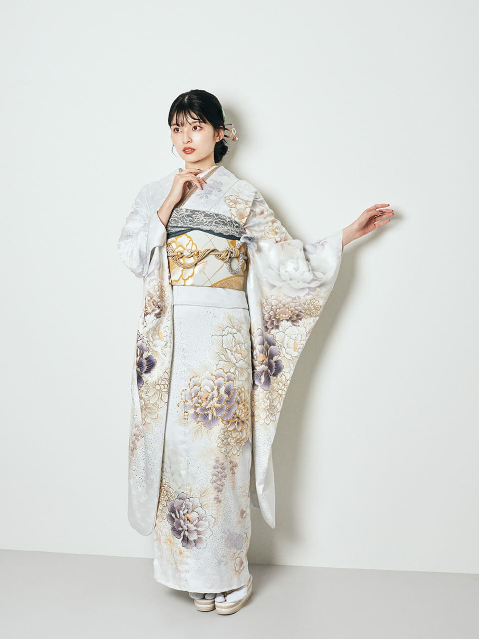また、地色が白だと振袖の柄がはっきり見えるので、スタイリングに立体感が出ます。