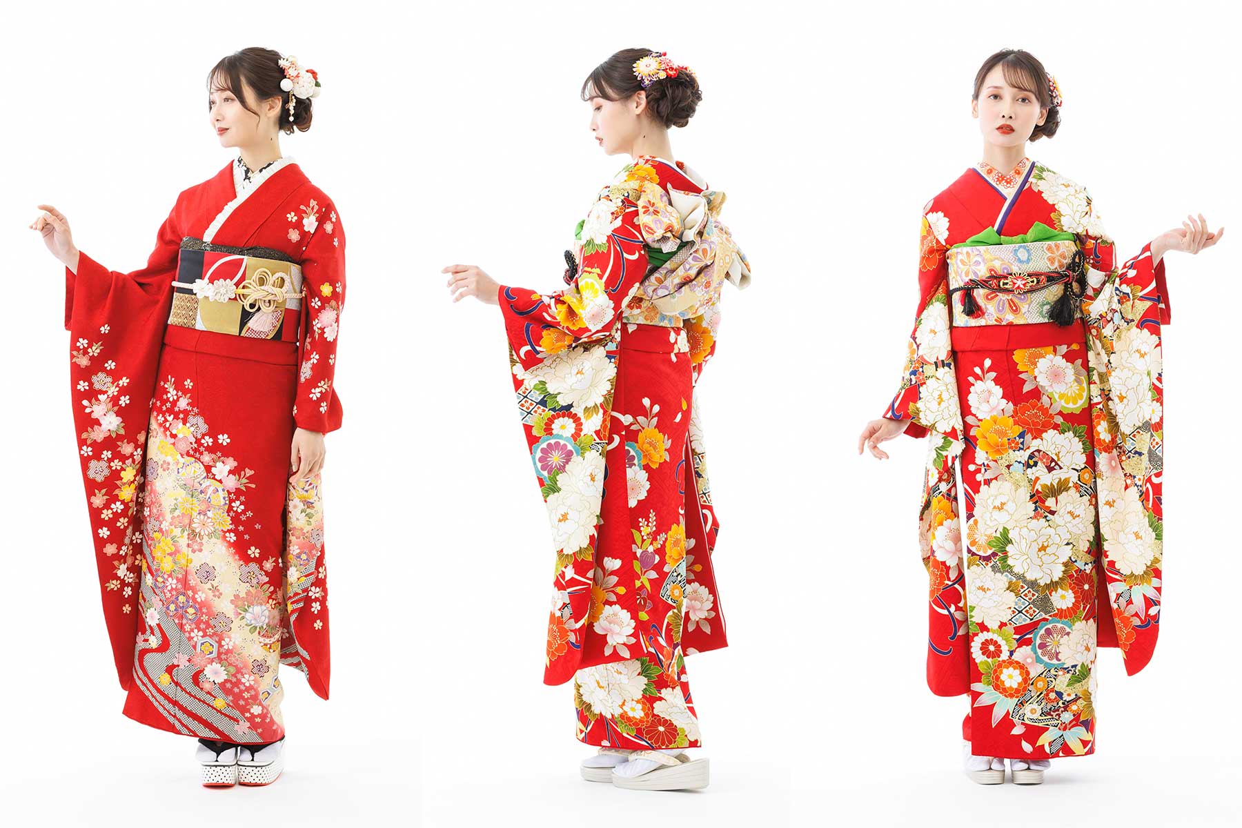 成人式の振袖の色として、定番の人気を誇る「赤」。明るく華やかな印象の赤は、身に着けただけで人目を惹き、おめでたい成人式にピッタリです。とはいえ、選ぶ人が多く他の人と被ることを心配する人も多いのではないでしょうか。赤色の振袖は、朱赤や深紅、ワインレッドなど種類が多いことがポイントです。