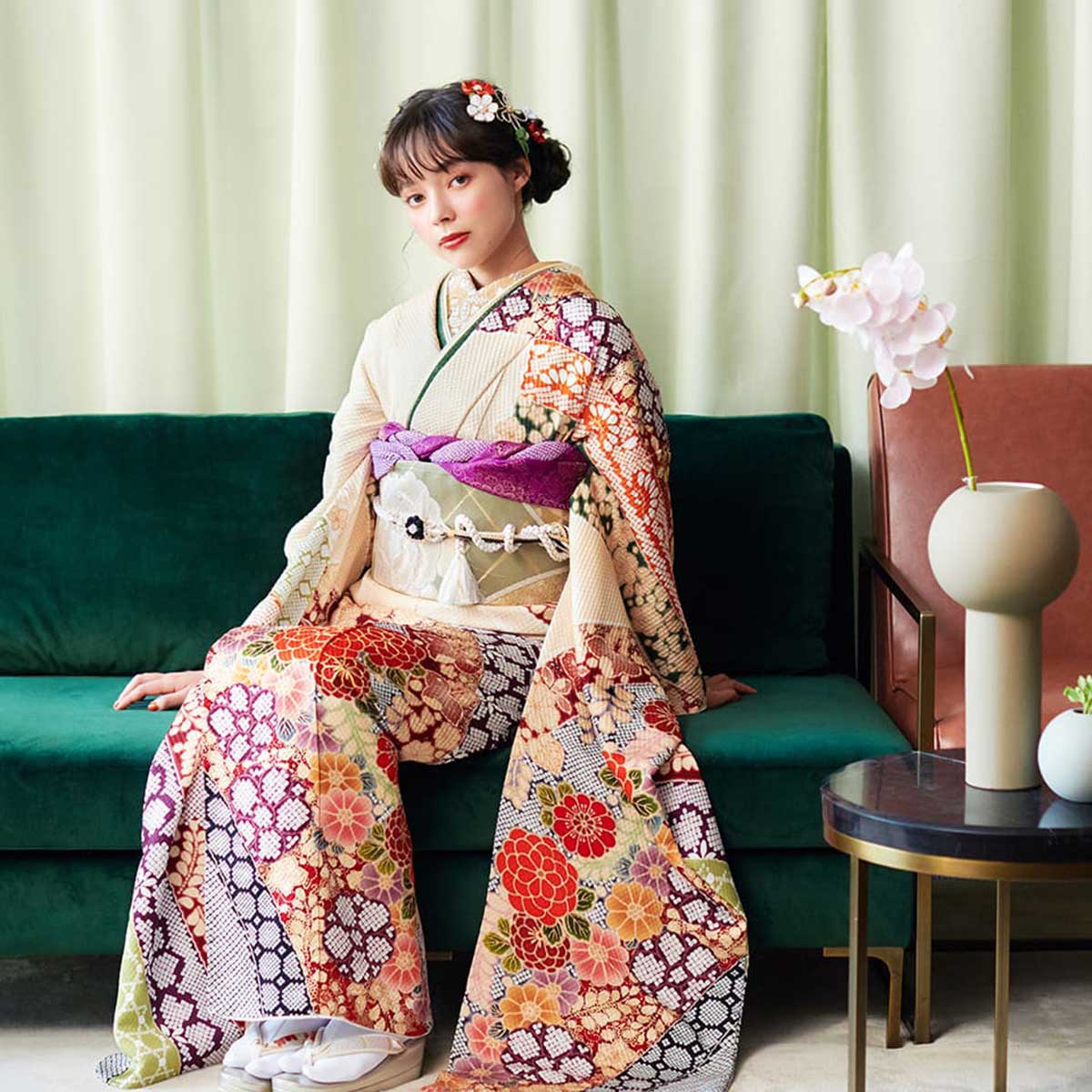 ここまで、人気の振袖の色柄についてお伝えしてきましたが、成人式の振袖姿は振袖だけでは未完成です。振袖を着るには、帯や小物が必要となるからです。ここでは、人気の振袖に合わせた今トレンドのコーディネートを紹介していきます。流行のワントーンコーデに挑戦してみよう