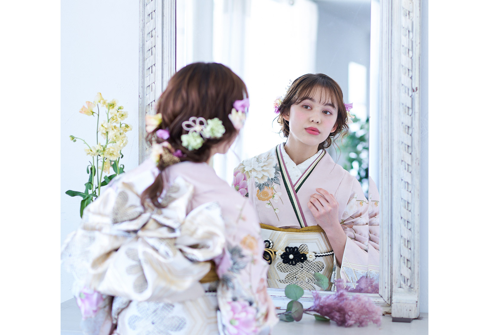 振袖の着付けをプロのスタッフに依頼すれば、当日バタバタと準備する必要がありません。専門スタッフが丁寧に美しく仕上げてくれるので、安心して当日を迎えることができるでしょう。5-1. 美容院