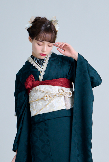 華やかな帯や小物を合わせればモダンで印象的な装いに、落ち着いたトーンの小物を選べば品のある大人びた雰囲気に仕上がります。柄物の振袖では難しい、自由なアレンジが楽しめることから、センスを生かした装いが可能です。