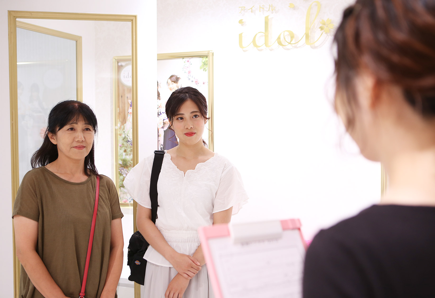 振袖の下見は、父や母と一緒に家族で行く方が多いようです。一生に一度の成人式のため、一緒に振袖を決めたい!と祖母や祖父が一緒に行くケースもあります。予算なども一緒に検討しながら振袖を下見できるのが良いですね。もちろん本人のみや母のみ、友達と一緒の下見も問題ありません。2_4.下見をする際に持っていくべきものはある?