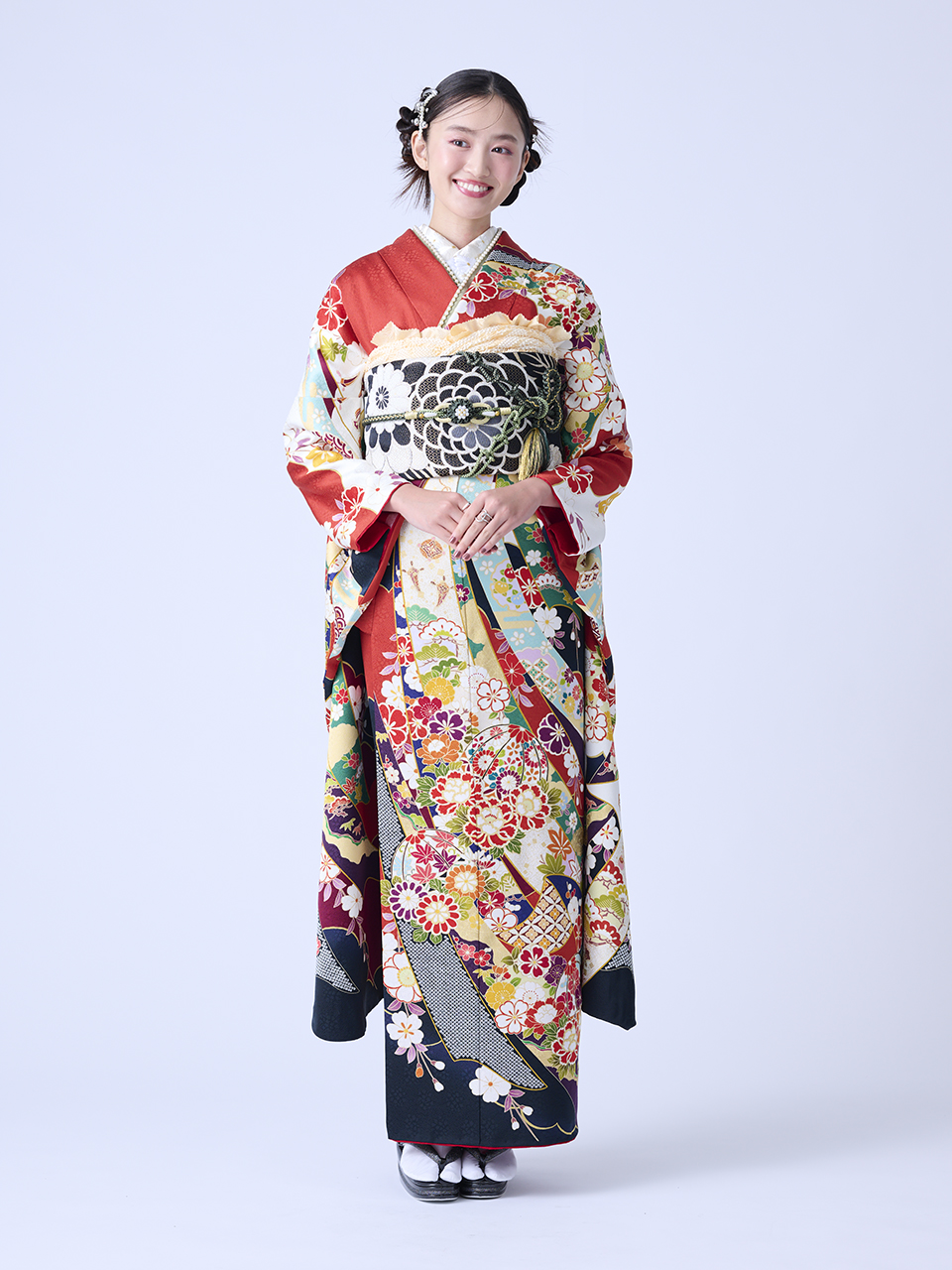 「必ずお読み下さい」 ※162,800円(税込)以上のお振袖は「オールインワン価格」(衣装レンタル+前撮り記念撮影+成人式当日着付+卒業式袴無料レンタル)となります。 ※162,800円未満の振袖は前撮り記念撮影、成人式当日着付は別途料金となります。 ※コーディネート小物(振袖以外の全て)は一例です。また、オプション商品を使用しております。 ※髪飾り・刺繍半衿はセット価格に含まれておりません。- ※162,000円(税込)以上のお振袖は「オールインワン価格」(商品レンタル価格+前撮り、当日着付け込み)となります。